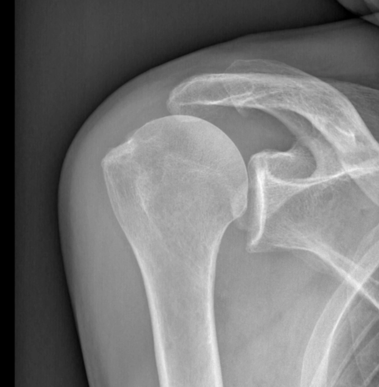 La tête humérale a migré sous l’acromion. Cela est secondaire à une rupture ancienne des muscles de la coiffe des rotateurs (normalement, ces muscles centrent la tête de l’humérus sur la glène de l’omoplate lors de la contraction du deltoïde).